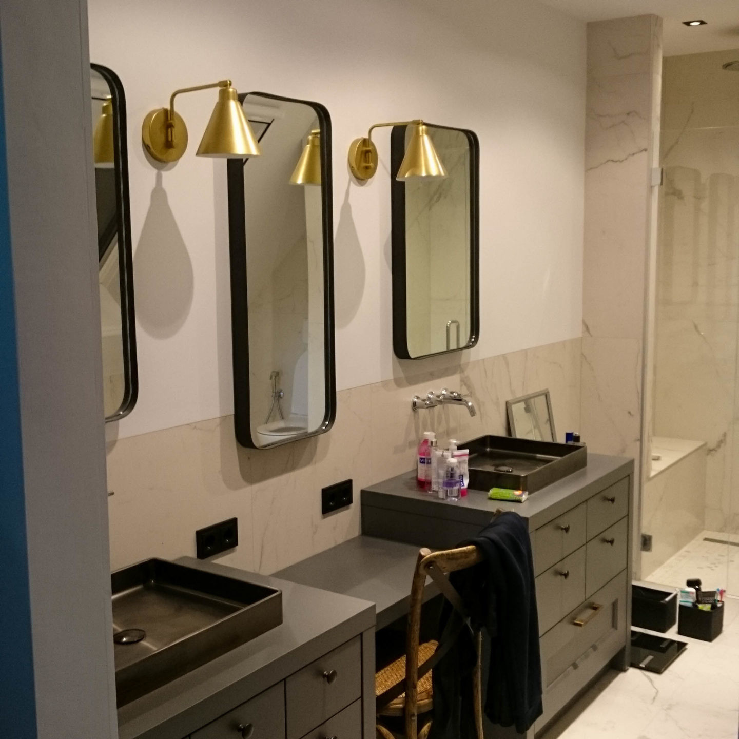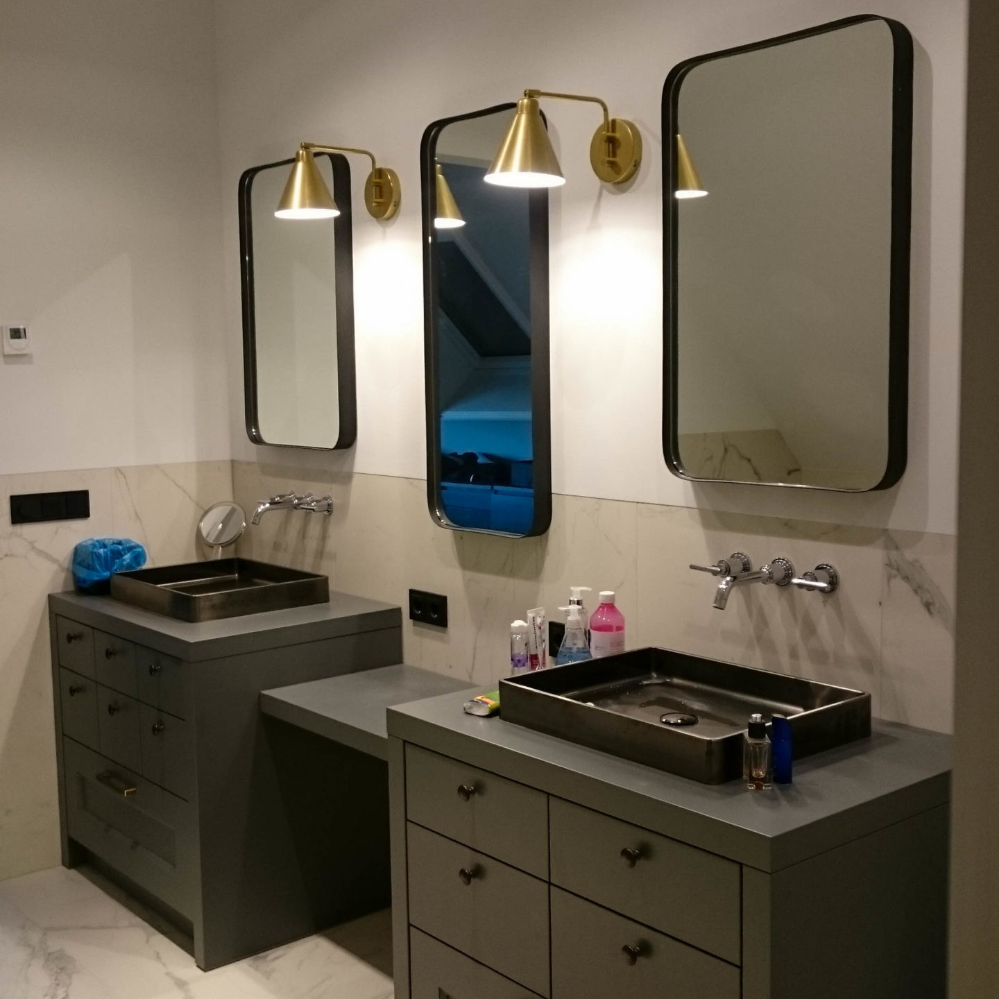 Badkamer meubels op maat gemaakt, met luxe lade-inrichting en bijpassende spiegels